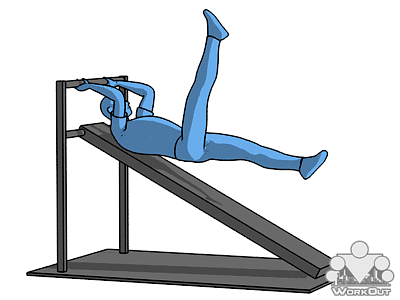 На 1ой картинке он должен опускать тело сверху вниз и поднимать обратно, то есть стартовое положение - ноги вверх.