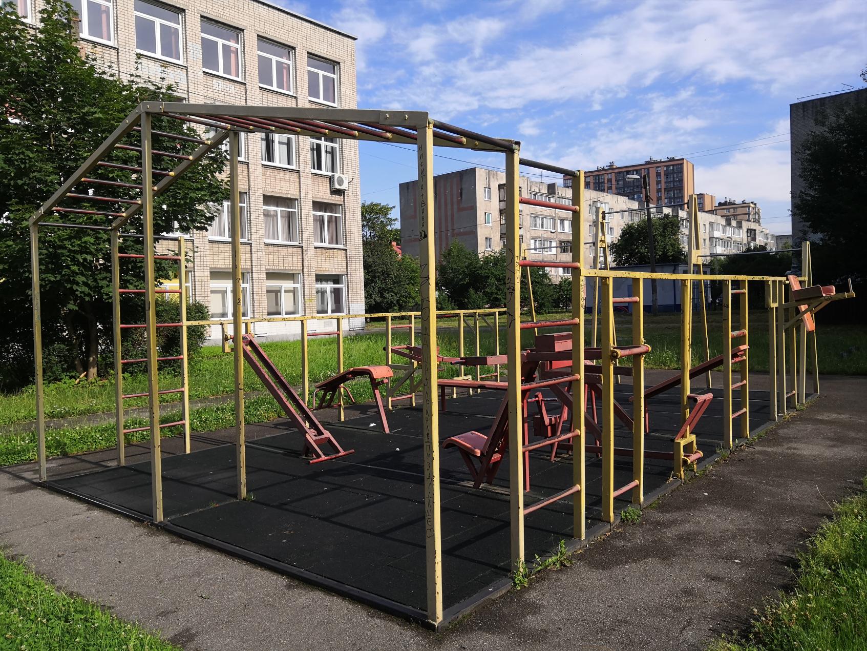 Площадка на территории школы. Стандартная. Не самая хорошая, но намного лучше, нежели ничего)