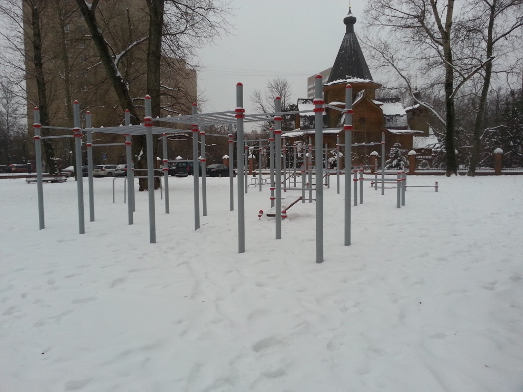 Площадка включает такие элементы как: турники, брусья, рукоход, лавку с упорами, кенгуру и т.д. и предназначена для жителей всех возрастов. Одновременно воркаутом на ней могут заниматься до 10 человек. Для обеспечения безопасности на основание комплекса нанесено резиновое покрытие, все используемые детали сертифицированы и имеют высокую износостойкость.