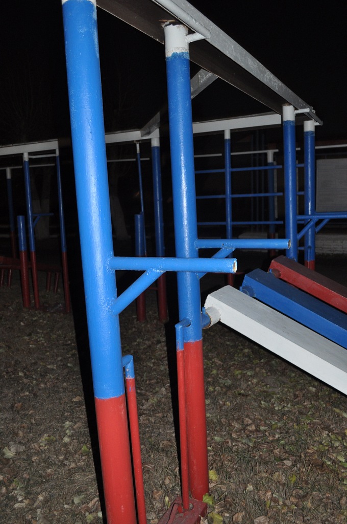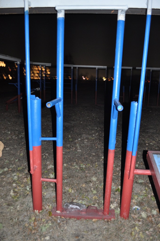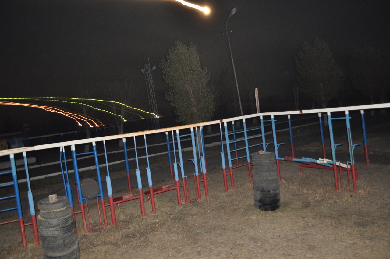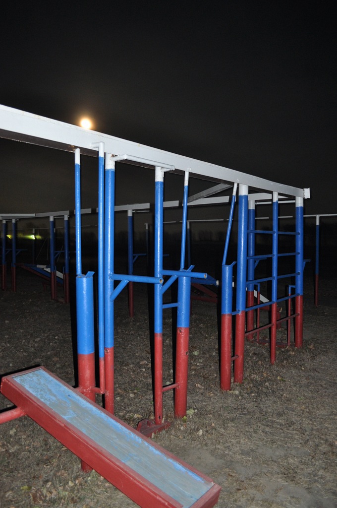 Площадка рядом с военной частью. На территории огромное разнообразие спортивных снарядов. Пожалуй, это самая большая и самая качественная площадка в городе.