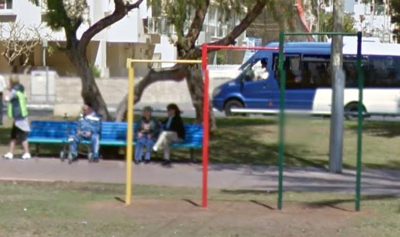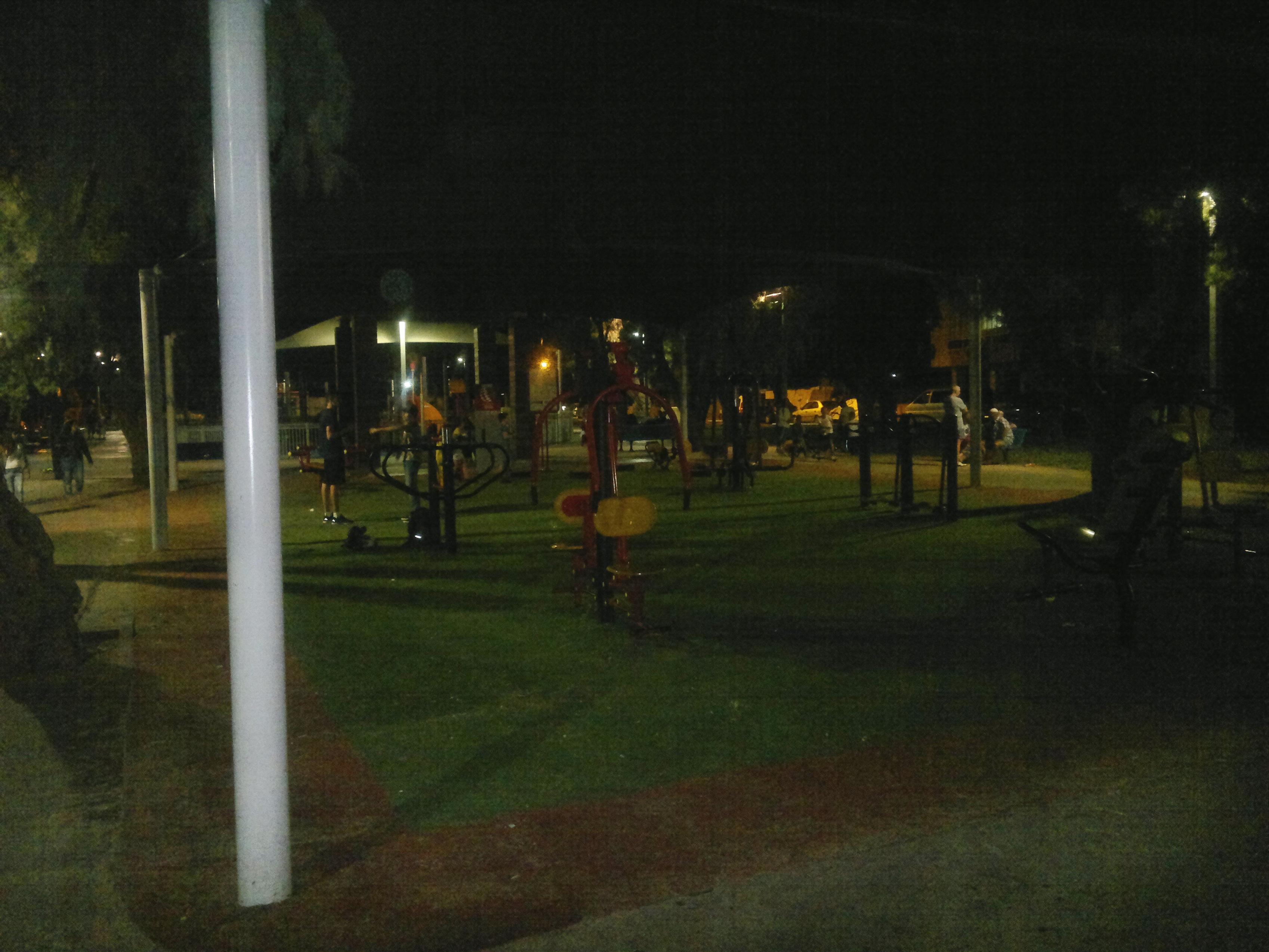 Случайно набрел на площадку поздно вечером; отдельно три турника, странная импровизация на тему брусья-пресс, очередная куча бесполезных тренажеров ).