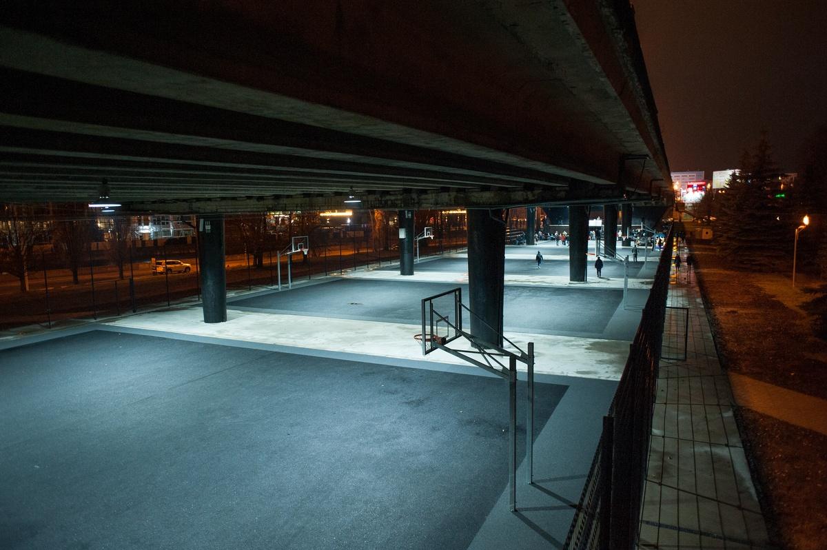 Современная площадка в стиле "Getto-workout". Под навесом( под мостом), есть освещение, туалеты и даже Wi-Fi, полы прорезинены как на верхнем озере. На зиму закрывается и охраняется. Открытие весной и до холодов.