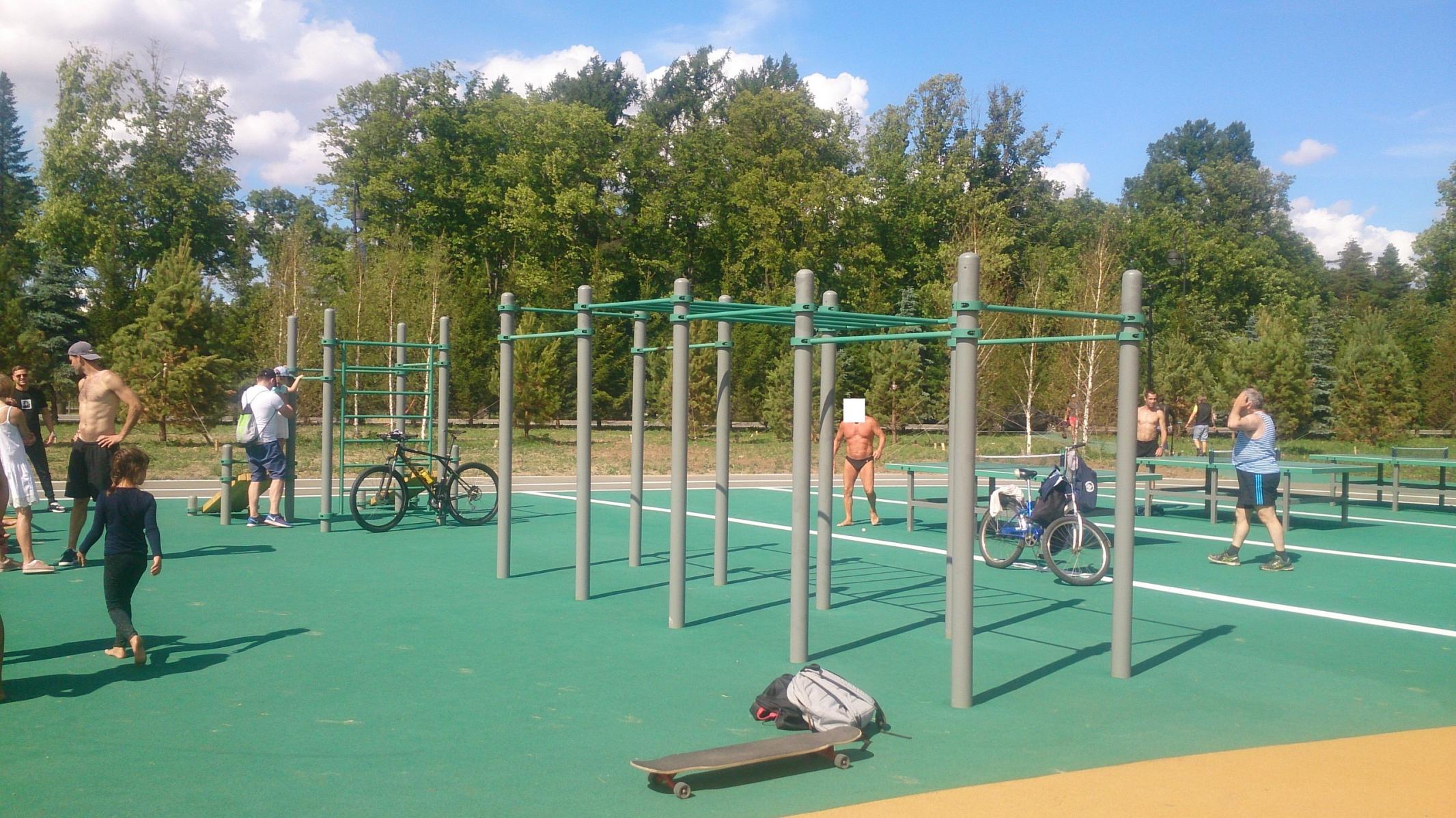 Очень крутая площадка! Тяжёлые гантели, можно даже присед со штангой делать, прокачать бицепс. Куча грамотных турников. Вид на реку и пляж. Раздевалка, парк, Крестовский. Обрезиненное покрытие. И, что не маловажно, народ тусуется правильный. Есть на кого посмотреть, у кого поучиться.