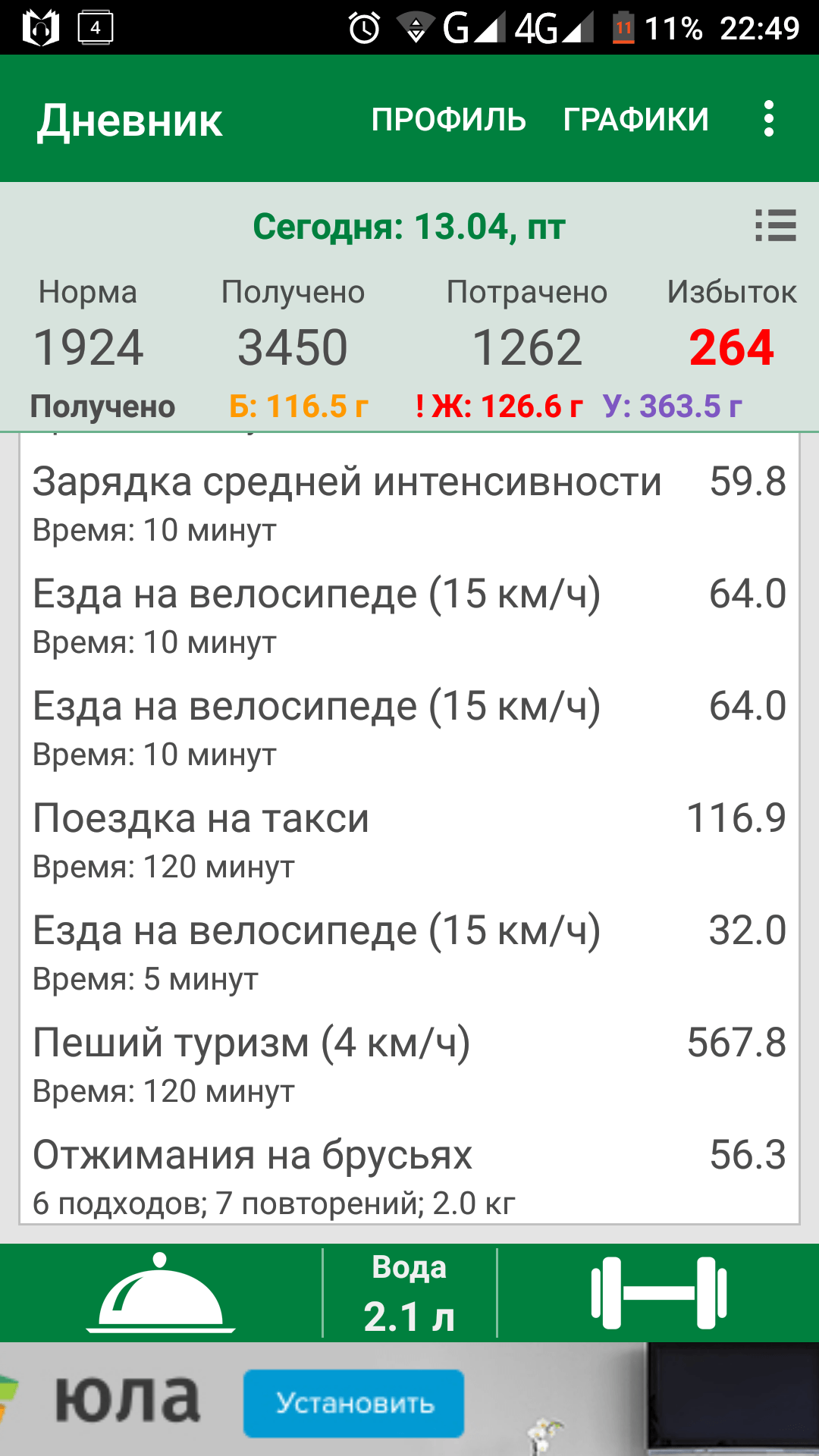 поездка на велосипеде - 3км.