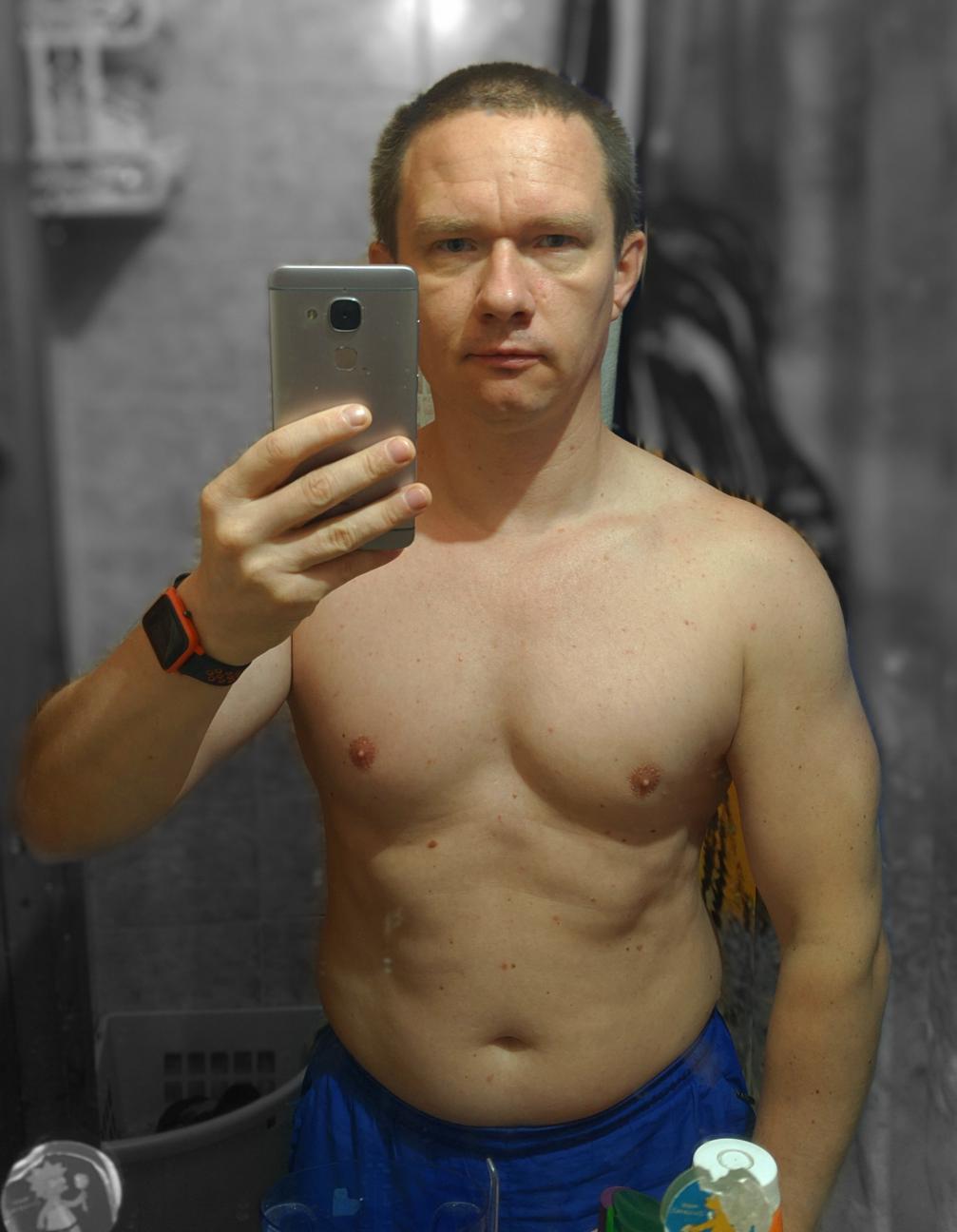 Отжимания от шведской стенки. Получилось отжиматься от перекладины на уровне колен, до этого мог отжаться только от той что повыше, на уровне таза. Осталась не задействована самая нижняя, на неё пока сил не хватает. Итого: 3*10 (на уровне колен)+7*10 (на уровне таза) Причем именно в этом упражнении начинает гореть пресс, а потом даже крепатурит;
