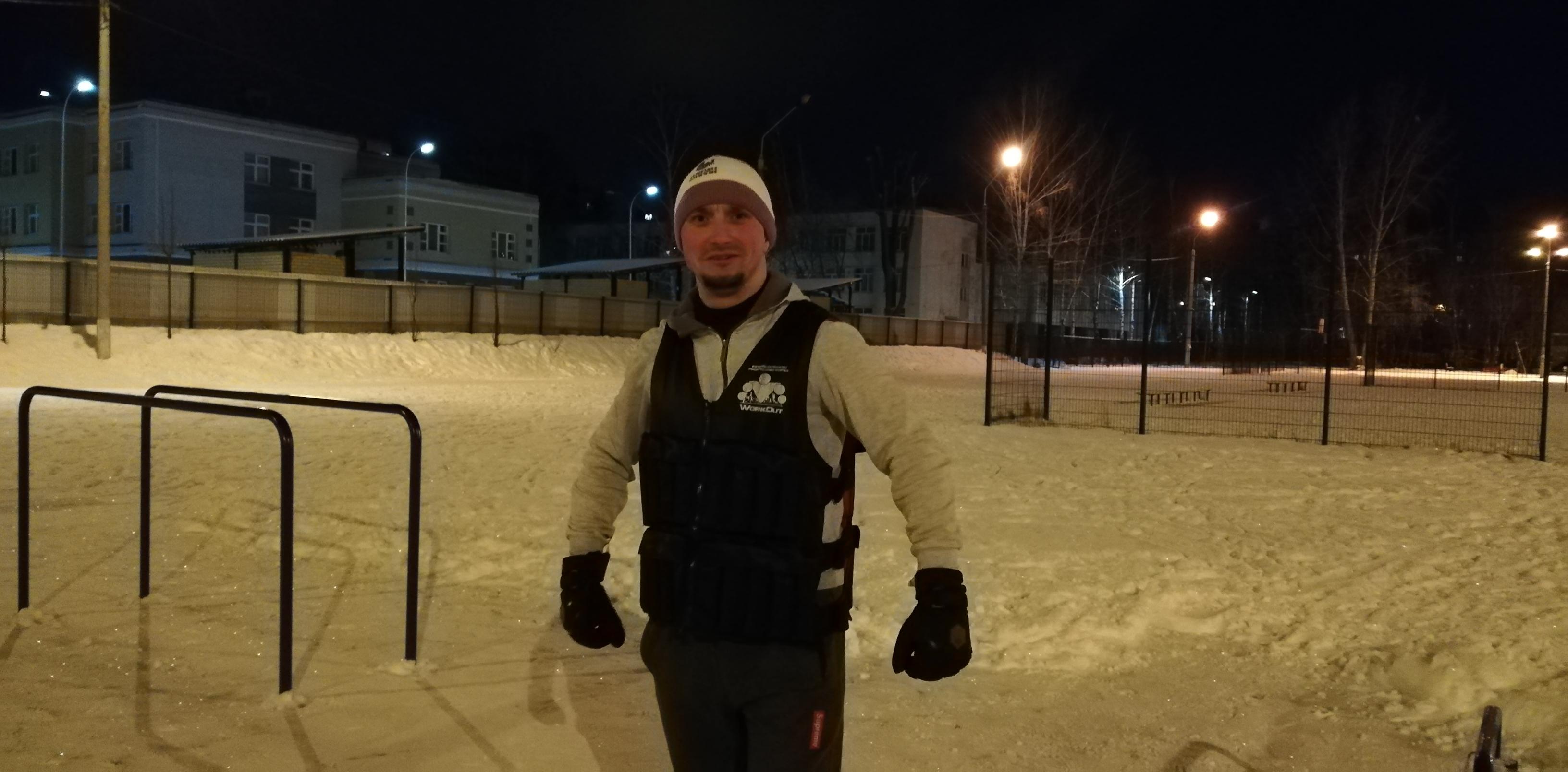 Спустя час: минут 20 усиленно ходил на рукоходе, тренировал хват в зимних перчатках