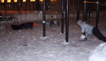 Снег, Снеговики, Турнички, бег.